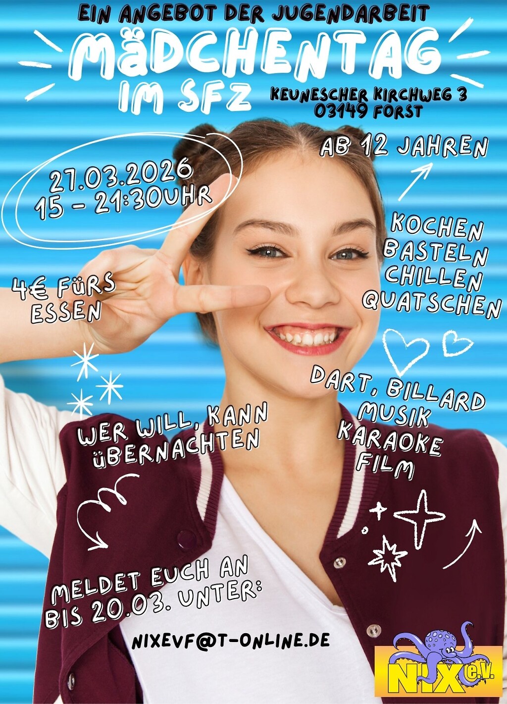 27.03.2026, 15 bis 21:30 im Schülerfreizeitzentrum, Keunscher Kirchweg 3, 03149 Forst
