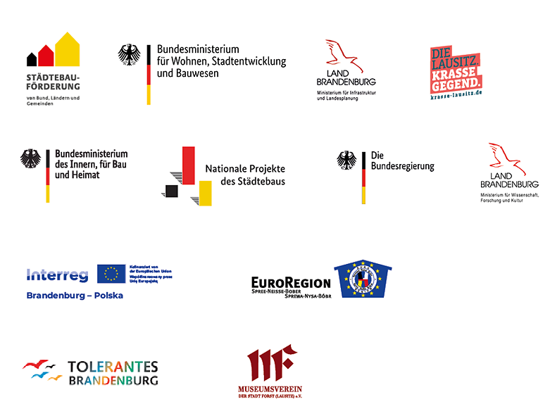 Dieses Projekt ist gefördert durch das Bundesministerium des Innern für Bau und Heimat aus dem Bundesprogramm Nationale Projekte des Städtebaus 2018/19, den Bund aus Mitteln des Investitionsgesetzes Kohleregionen und kofinanziert aus Mitteln des Landes Brandenburg.