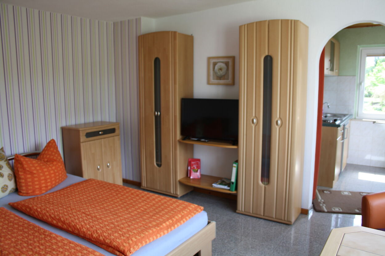 Klein aber fein verfügt sie über einem gemütlich eingerichtetem Wohn-/Schlafraum, einer Küche und einem Bad mit WC und Dusche.