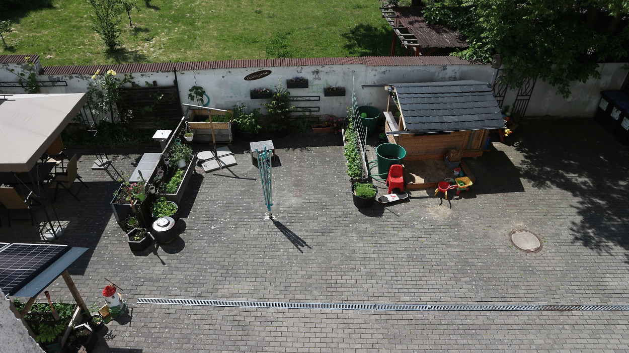 Auf dem Hof lädt eine gemütliche Sitzecke mit Grill und Spielplatz für die Kleinen zum Verweilen ein.