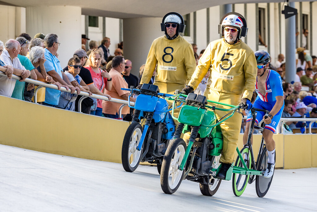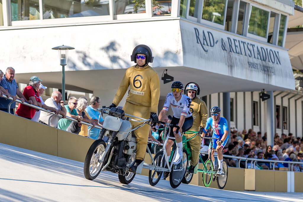 Das Feld wird komplettiert mit Karl Gustav Omann und Nils El Khanji, zwei Nachwuchstalenten, die sowohl hinter den Stehermaschinen, als auch hinter dem Derny zu Hause sind.