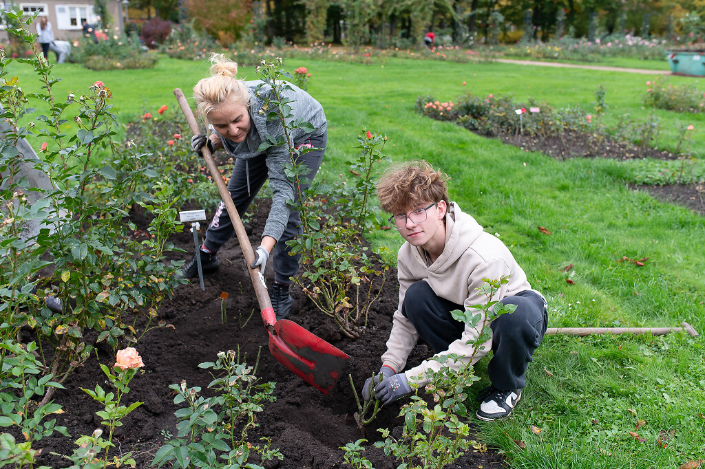 Am Samstag, den 11. Oktober verwandelte sich der Ostdeutsche Rosengarten in Forst (Lausitz) erneut in einen Ort gelebter grenzüberschreitender Zusammenarbeit. Das 4. deutsch-polnische Parkseminar wurde hier durchgeführt mit rund 70 freiwilligen Teilnehmerinnen und Teilnehmern aus Forst, der polnischen Partnerstadt Brody sowie weiteren Gästen, etwa einer Familie aus Berlin und einer Schülergruppe mit dem Ausbildungsschwerpunkt Landschaftsarchitektur aus Zielona Góra.