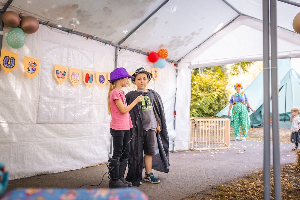 Ein buntes Programm erwartete unsere zahlreichen Gäste zu unserem diesjährigen Sommerfest, denn die Kinder der Kita „Waldhaus“ haben gemeinsam mit allen Erzieherinnen eine abwechslungsreiche Zirkusvorstellung einstudiert. Dabei konnten die Kinder selbst wählen, welche Talente sie darbieten wollten. Ob Löwe, Zirkuspferd, Tänzer, Akrobat, Schlangenbeschwörer oder Zirkusdirektor, die Eltern, Großeltern und Verwandten konnten eine unterhaltsame Vorstellung erleben. Obwohl das Wetter uns leider nur kurzzeitig wohlgesonnen war, blieben viele Gäste auch beim später einsetzenden Regen, um Kaffee, Kuchen, Bratwurst und Zuckerwatte zu genießen. Auch die amtierende Rosenkönigin gesellte sich zu unseren Gästen und verfolgte die Auftritte unserer kleinen und großen Darsteller aufmerksam.
