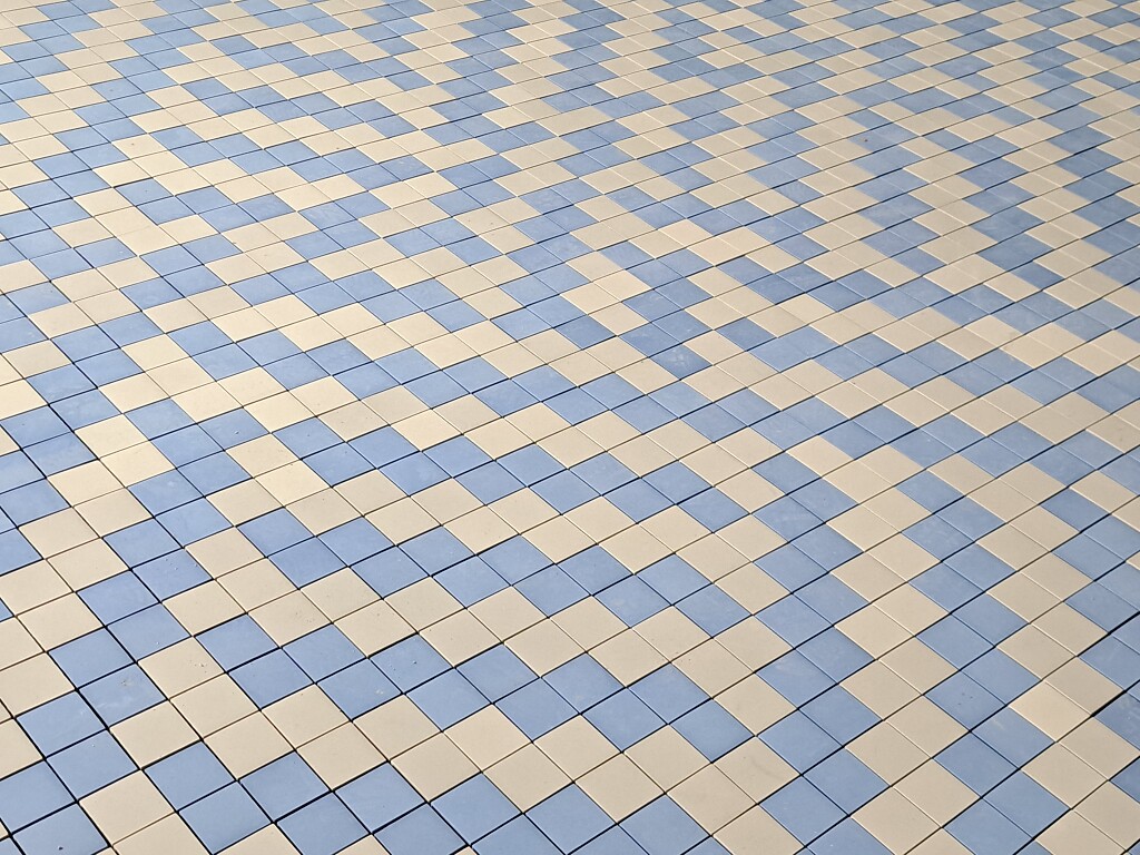 Die bewussten Unterbrechungen der Rapportbahnen erzeugen visuelle Reibungen, die das Mosaik deutlich von einem konventionellen Bodenbelag unterscheiden. Gleichzeitig wird das Prinzip textiler Musterproduktion durch den Materialtransfer von Textil zu Architektur als zeitgemäße gestalterische Strategie interpretiert.