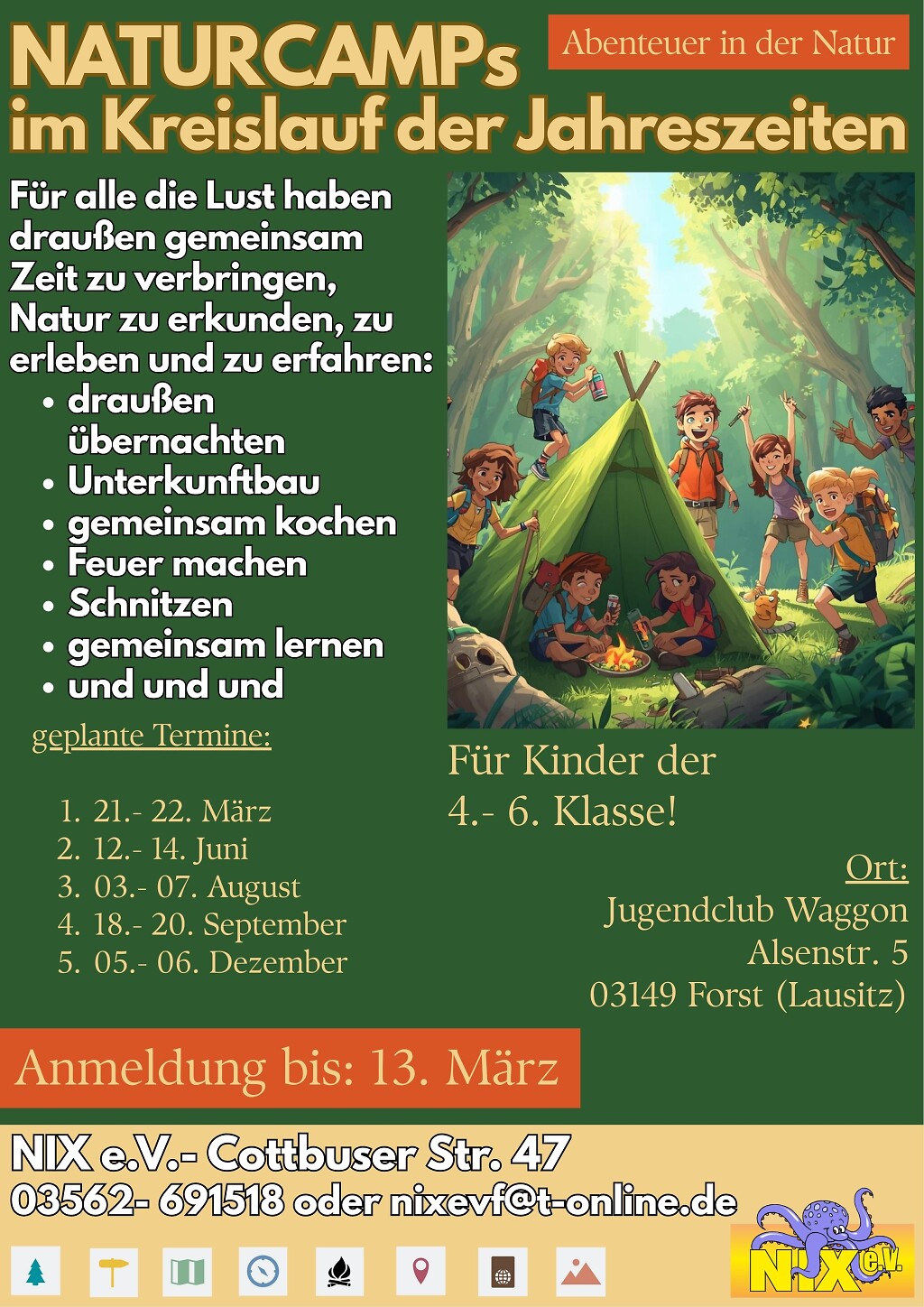 Montag, 26. Januar 2026 | Allgemeines, Freizeit | Der Nix e. V. lädt ein Naturcamps und Wildling-Gruppe
