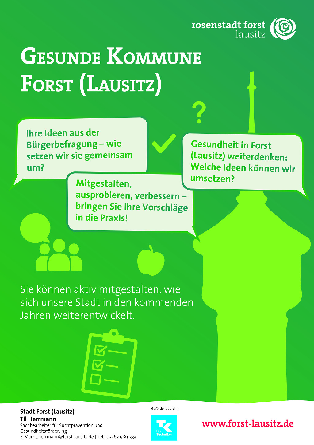 Mit dem durch die Techniker Krankenkasse geförderten Projekt „Gesunde Kommune“ setzt die Stadt Forst (Lausitz) ein starkes Zeichen für Prävention und Gesundheitsförderung. Nach Abschluss der bis Dezember laufenden Bürgerbefragung, an der sich zahlreiche Forsterinnen und Forster beteiligt haben, werden die ersten Ergebnisse nun öffentlich vorgestellt und gemeinsam weiterentwickelt.