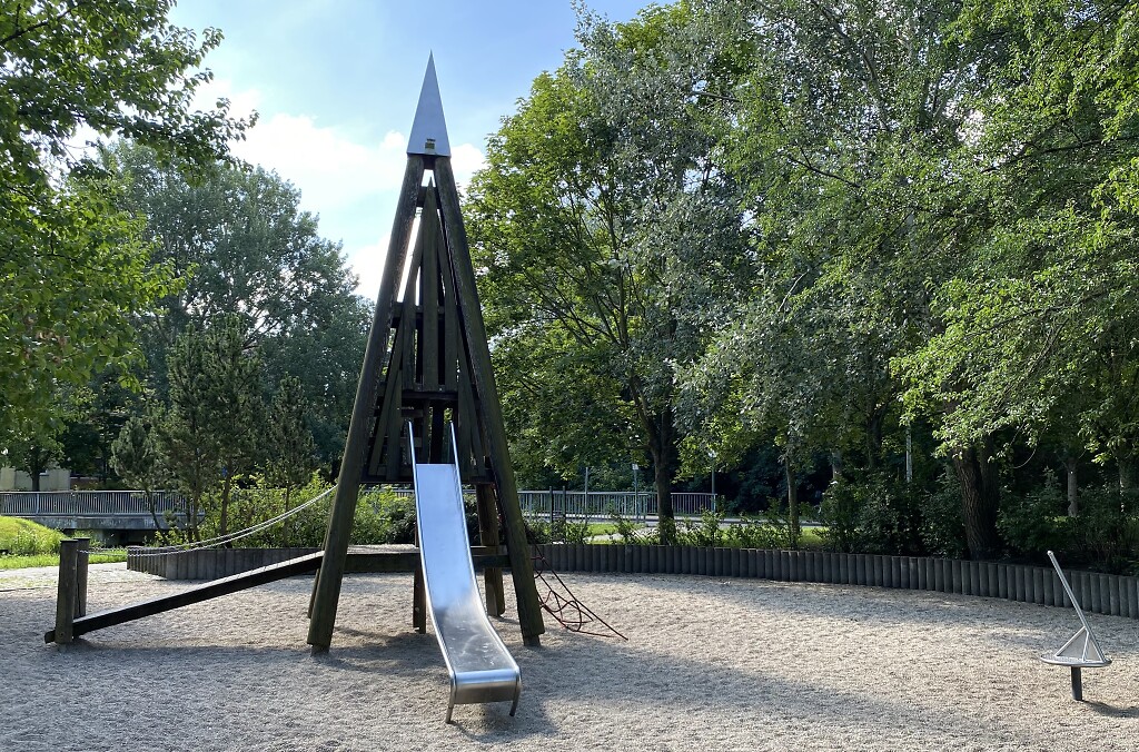 Das Hauptspielgerät auf dem Spielplatz am Mühlgraben, auch als “Raketenspielplatz” bekannt, wird in Kürze zurückgebaut.